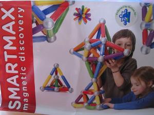 22 silver balls, 1 plastic bix with lid, 18 large straight pieces, 8 curved pieces, 43 short straight pieces